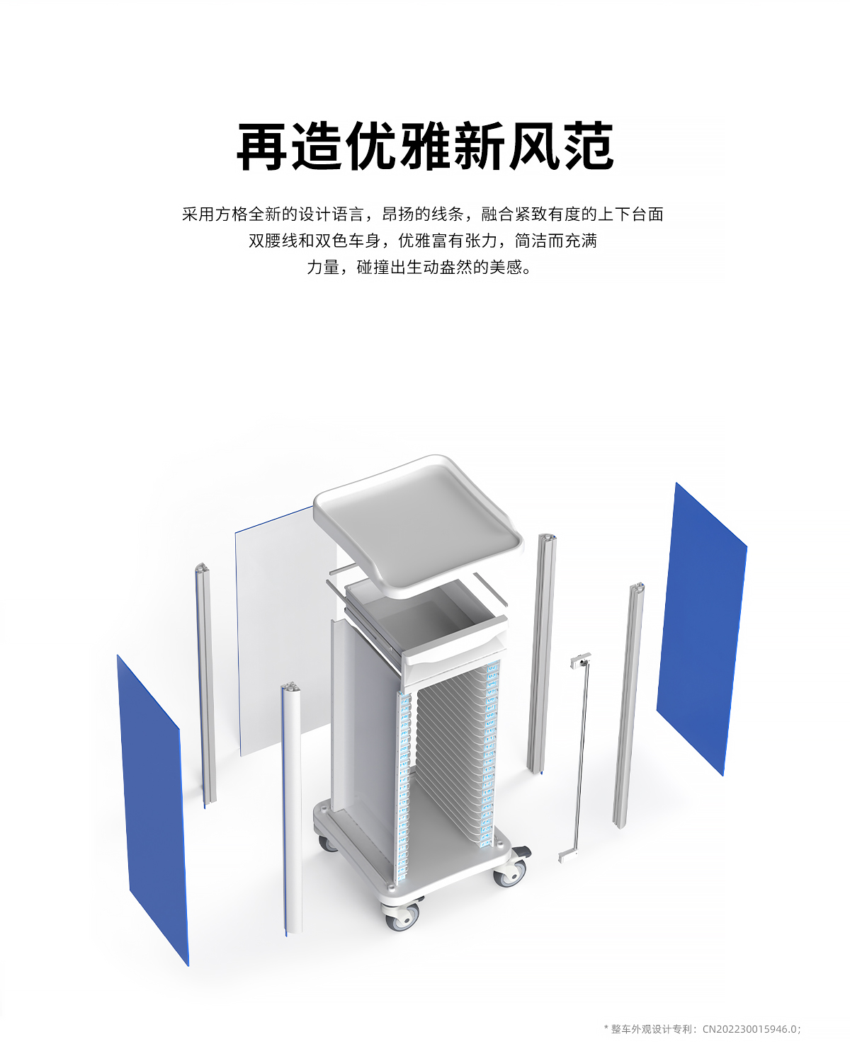 2.车体颜色星空蓝+皓月白,造型精美,宁静简约,契合医院环境;