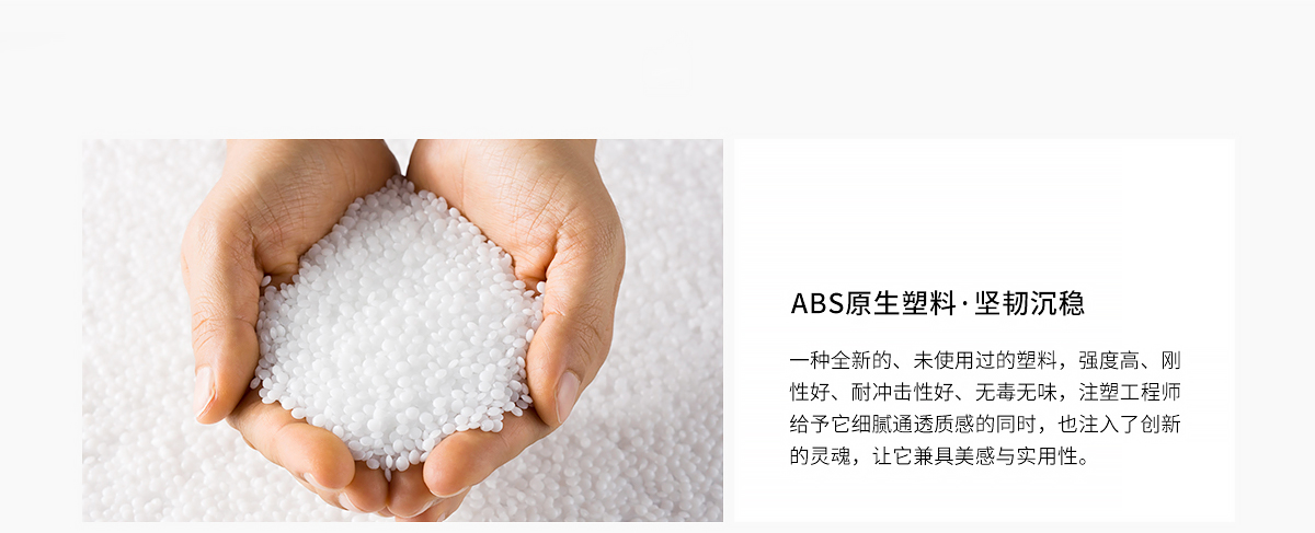 1.上下台面采用ABS原生注塑成型,无棱角设计,触感丝滑,耐磨、耐碰撞;