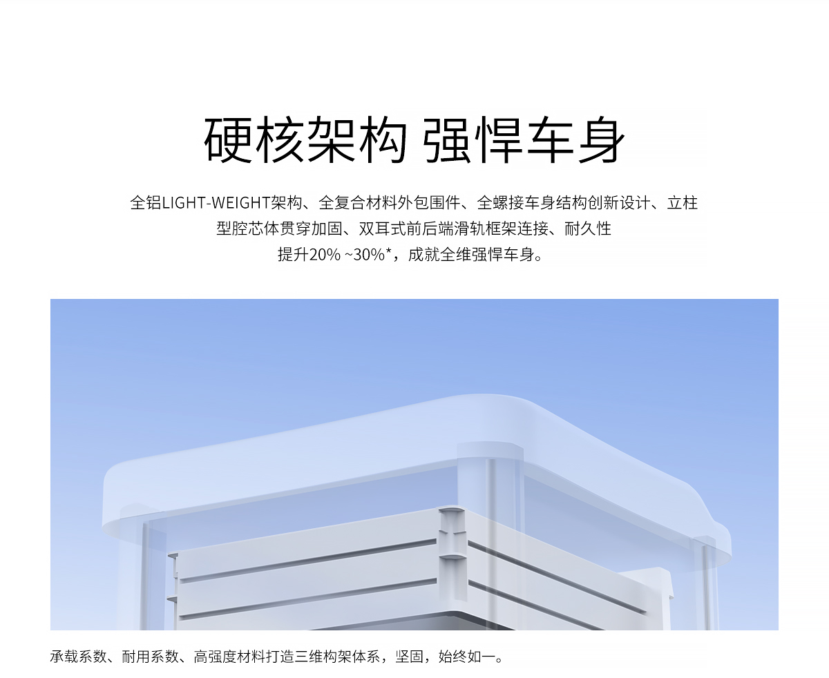 4.侧面背板采用铝塑复合板,平整支撑性好,车体更轻便;
