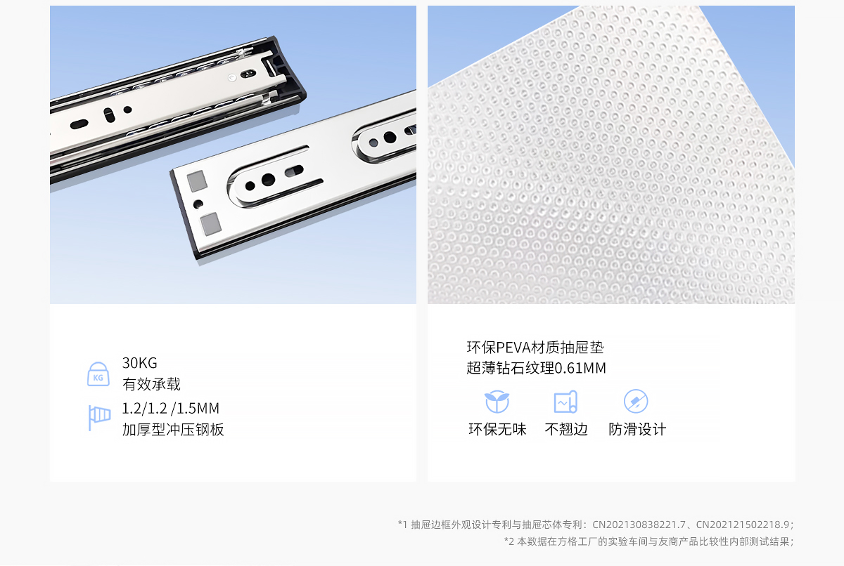 7.抽屉选用重型1.2/1.2/1.5MM三节静音滑轨,抽拉轻松;
