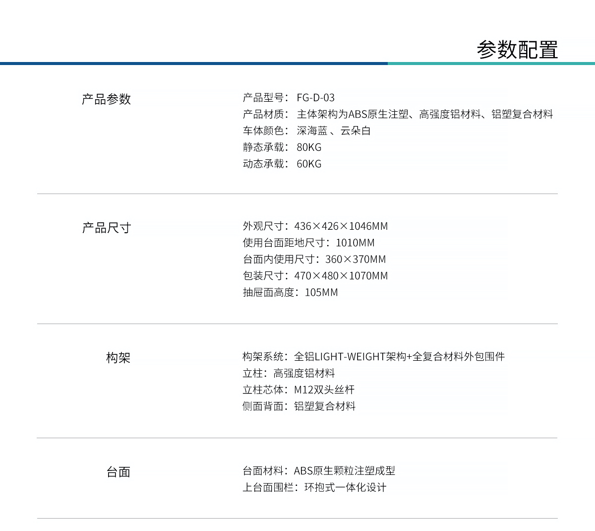 3.立柱铝合金材质,承载量大,利用芯体连接台面,达到整车稳固不变形,强度高,轻量化升级;