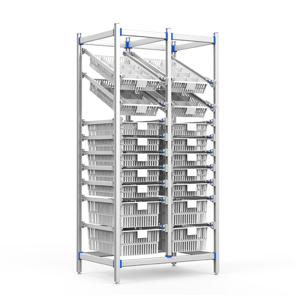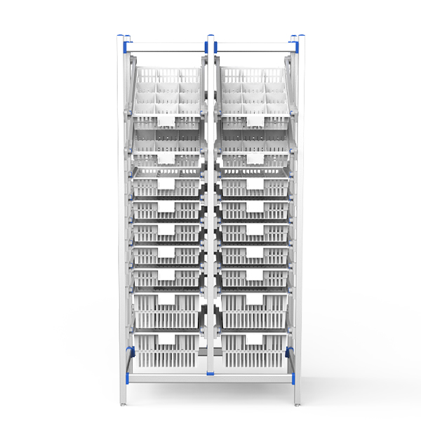为医院药房、供应室和医疗物流中心优化设计,适配药房(药品倾斜可视存取)、治疗室(耗材分层快取)、供应室(灭菌包预组分类),双倾斜篮可快速查看物品,而模块化设计可最大限度地提高存储密度。在不平坦的地板上稳定,适用于高流量的临床环境。