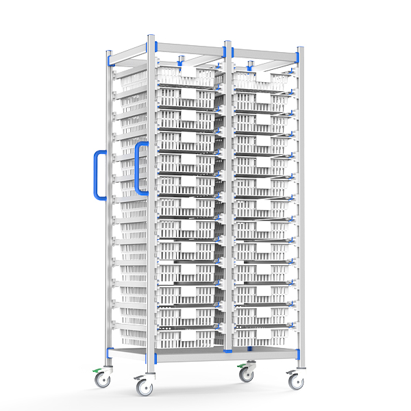 专为手术室(器械/耗材密集周转)、中心供应室(无菌物资防菌存储)、药房(药品高密度动态管理)、急诊科(快速机动调配)设计,适配需高频移动、精准定位及静音平稳转运的医疗场景,满足院感管控与空间高效利用需求。