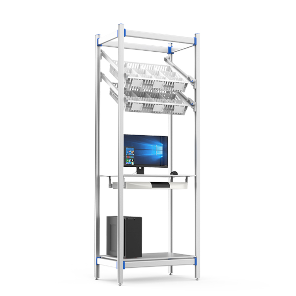 适配护士站(耗材存储+电子病历操作)、检验科(试剂存取+数据录入)及门诊治疗室(耗材快取+患者信息处理),集成中层电脑区与65°倾斜篮筐设计,实现防菌存储与工作站功能一体化,满足院感管控及空间高效复用需求。