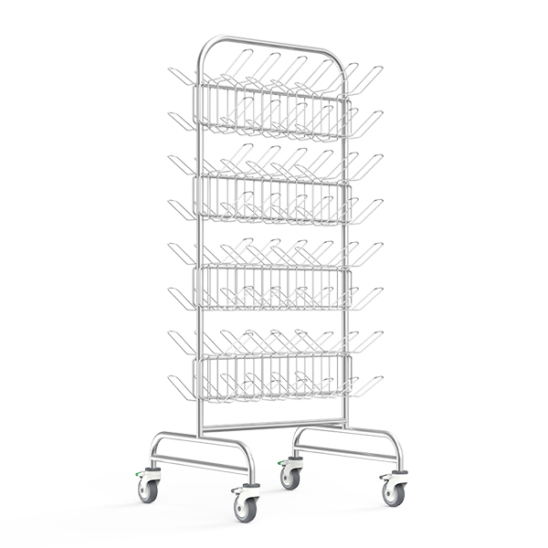 手术室鞋架以304不锈钢双面模块化结构为核心,40°倾斜鞋位防滑落+96只高密度存储;医用静音脚轮双刹车定向支持360°灵活转运,快速拆装设计无缝适配高频次消毒。